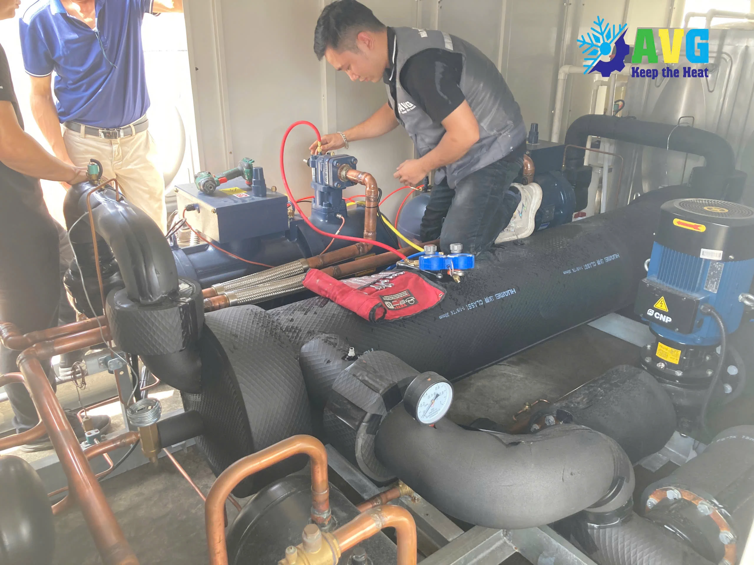 4. Thi công Chiller (Hệ thống làm lạnh công nghiệp): Hệ thống Chiller của AVG được thiết kế để cung cấp giải pháp làm lạnh hiệu quả cho các ứng dụng công nghiệp, từ các hệ thống điều hòa không khí lớn, hệ thống làm lạnh cho nhà máy chế biến thực phẩm, dược phẩm đến các ứng dụng yêu cầu làm lạnh công nghiệp. Chúng tôi cung cấp dịch vụ thi công, lắp đặt và bảo trì các hệ thống Chiller với các công nghệ tiên tiến nhất, đảm bảo hoạt động ổn định, tiết kiệm năng lượng và giảm thiểu chi phí vận hành cho khách hàng.